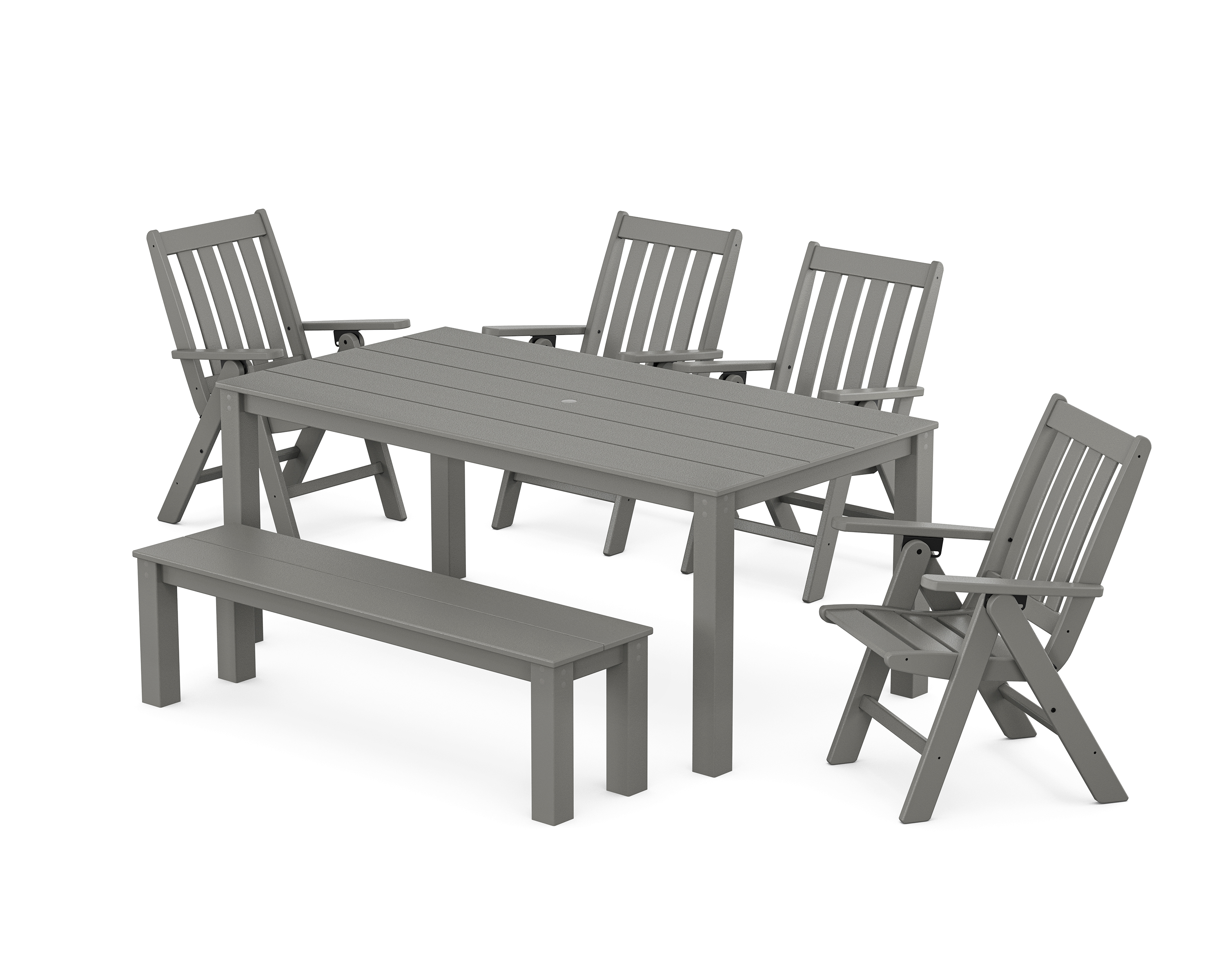 POLYWOOD Vineyard Folding Chair 6-Piece Parsons Dining Set with Bench